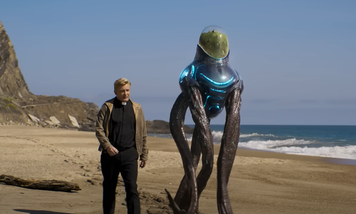 『러브, 데스 + 로봇』의 상징과도 같은 블랙코미디와 풍자는 더욱 날카로워졌습니다. 『세 대의 로봇』 시리즈의 팬이라면 『또 다른 커다란 것』이 선사하는 고양이들의 냉소적인 세상 지배 선언에 무릎을 탁 치게 될 것입니다. 귀여움 뒤에 숨은 서늘한 통찰이 돋보이죠. 인류의 오만함이 부른 초소형 외계인의 복수극 『미니와의 조우』는 스필버그에 대한 경의와 B급 유머를 버무리며 '작고, 웃기고, 결국엔 다 터뜨려버리는' 시리즈 특유의 매력을 폭발시킵니다. 인류의 종교를 비트는 상상력은 『골고다』에서 정점을 찍습니다. 신이 아닌 돌고래를 구원자로 섬기는 외계 종족의 황당한 성전 선포는 가장 신랄한 웃음을 자아내며, 클레이 애니메이션으로 제작된 『똑똑한 가전제품, 멍청한 주인』은 AI 가전들이 폭로하는 인간의 민낯을 통해 부끄럽지만 눈을 뗄 수 없는 현실 풍자 시트콤을 완성했습니다.